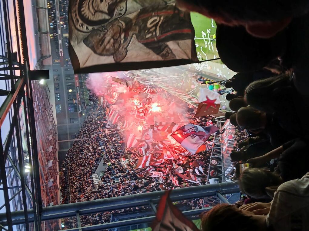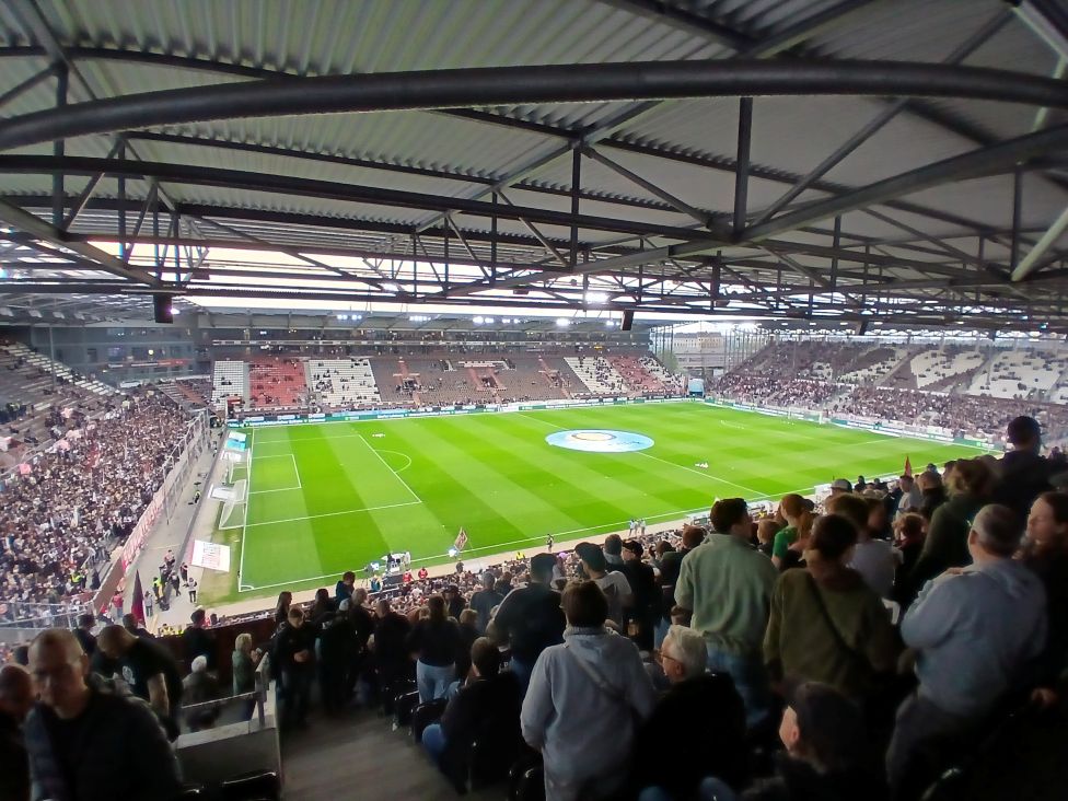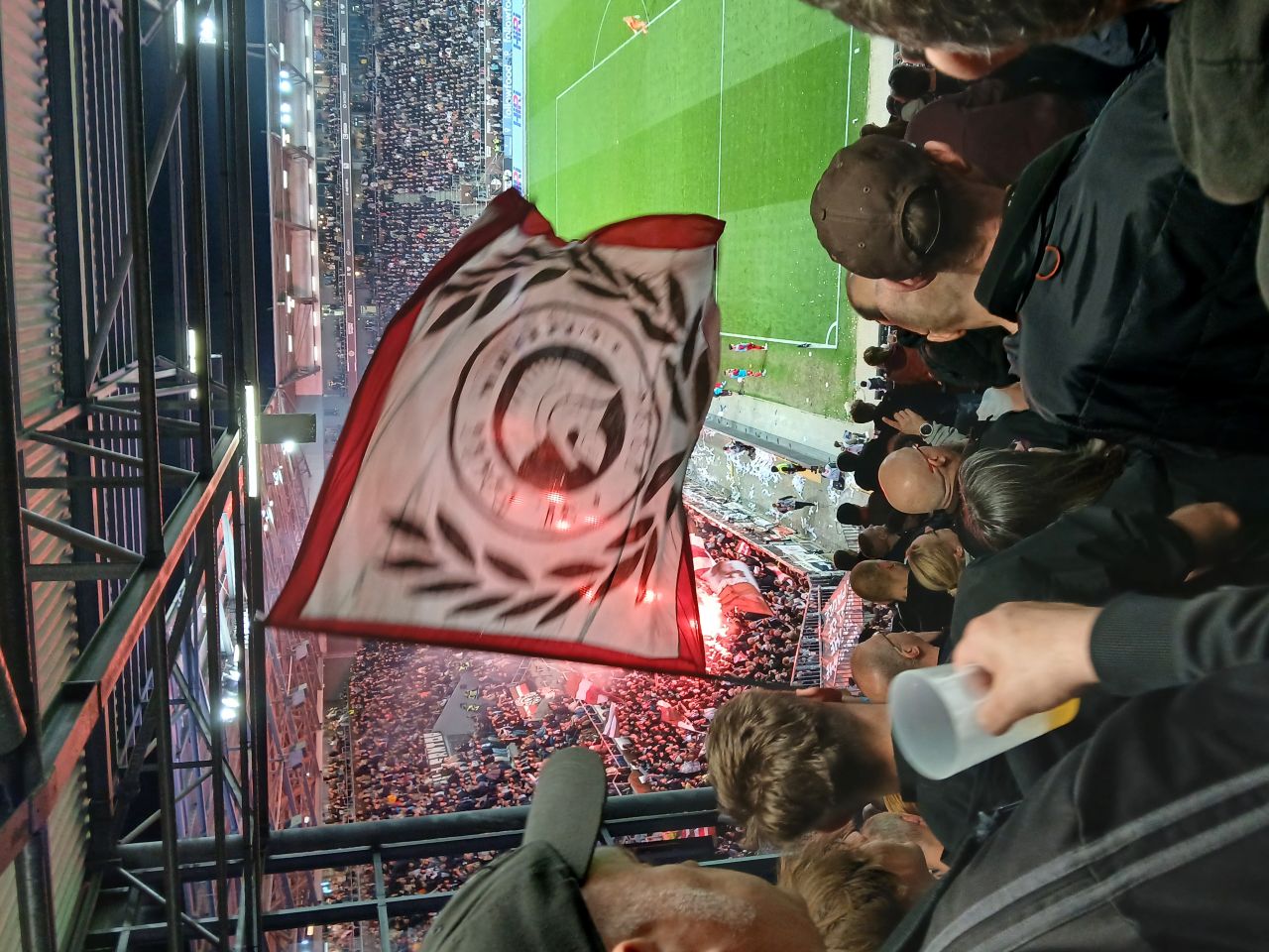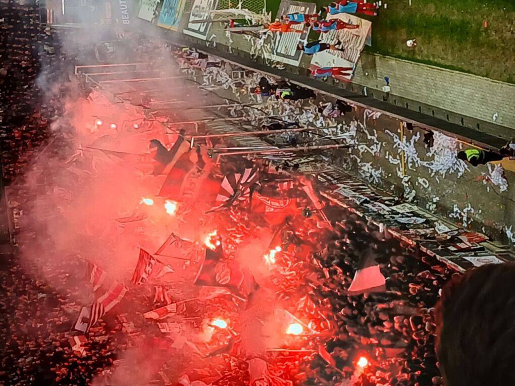 Am Einlass war ich gerade mal total verwirrt. Warum? Es war knapp nach 19 Uhr und es stand niemand am Eingang zu Block C, bei drei Security-Durchgängen, da war niemand. Was ist da los? Maik erklärte mir, da ja jetzt schon zwei Stunden vor Spielbeginn geöffnet wird, hat es sich etwas entzerrt und da hätte ich noch locker in der Weinbar abhängen können.