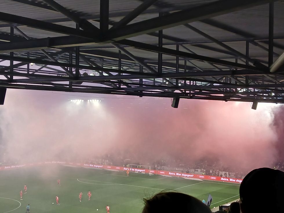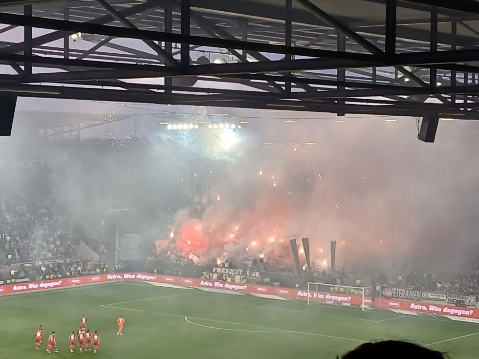 Dann lieber etwas mehr Support auf den Rängen. Man hatte ja beinahe den Verdacht, wenn Köln ein kleines Licht anmachte, dass sich die Süd herausgefordert sah.