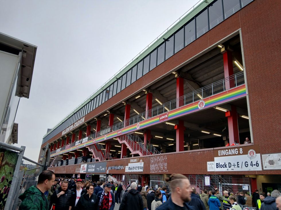 Natürlich nicht. Nicht in unserem Stadion. Hier sieht es schon anders aus: JAL in Japan. Außerdem tauge ich nicht zum hyperaktivem Abfeiern. Wie dem auch sei, ein kurzer Aufruf und schon konnte ich das Ticket in der Wallet abspeichern. Danke Maik. Blieb noch Zeit, da das Spiel erst 20:30 Uhr angepfiffen werden soll. Somit einkaufen, etwas essen und dann wie immer: Rasieren & Duschen. Es gibt Dinge, die ändern sich nie. ÖPNV-Ticket in der App gelöst, zur U-Bahn gelaufen und einen Aufkleber gefunden: ![]() Käffchen & Wasser am Kiosk gekauft und schon konnte es losgehen. Okay, Du hast recht, losfahren. Feldstraße bin ich ausgestiegen, dachte, es wäre kürzer zum Fanladen als über den Dom von der Station St. Pauli. Erst mal noch Touristenkram.